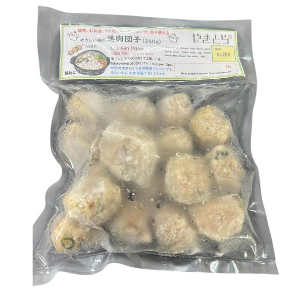 Chicken dango are soft, seasoned chicken meatballs commonly used in Japanese cooking, particularly when skewered (Tsukune) and grilled. They can also be eaten on their own after microwaving or added to soups, stews, and yakitori-style dishes.