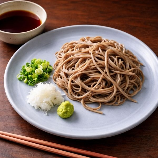 Soba is best enjoyed simply with mentsuyu, a traditional Japanese dipping sauce made from soy sauce, mirin (rice wine), and dashi (fish stock) to highlight their natural taste.