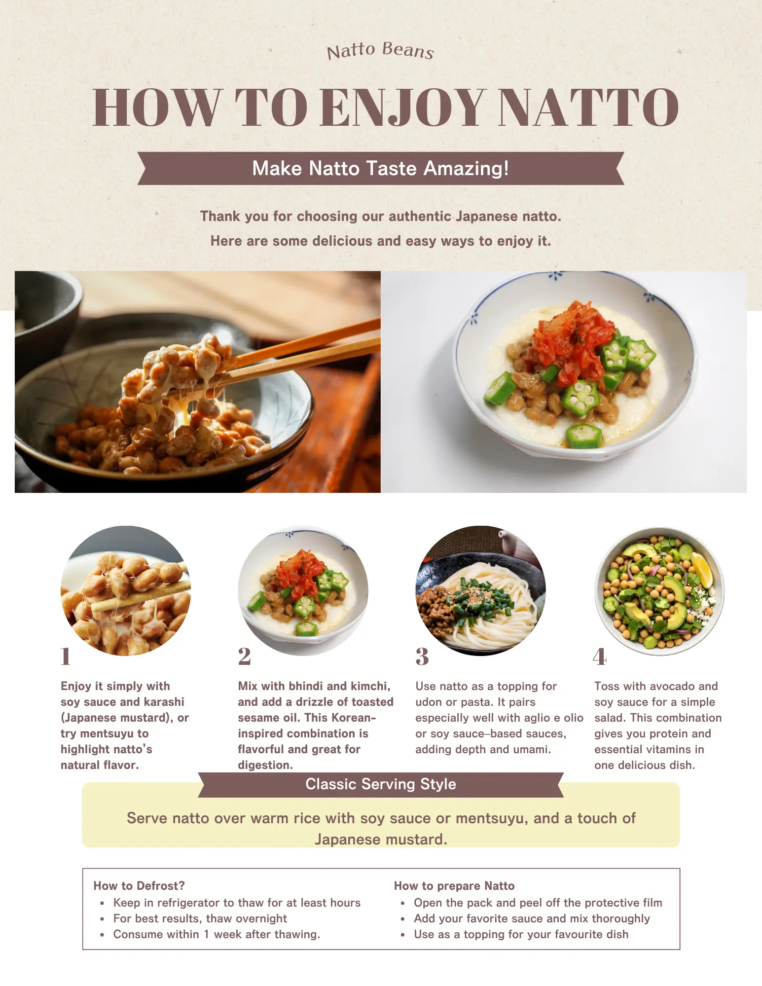 Natto is a traditional Japanese superfood made by fermenting soybeans with Bacillus subtilis. Naturally rich in plant-based protein, fibre, and probiotics, it supports digestion, gut health, and overall wellness. Its unique enzyme, nattokinase, may help support healthy blood circulation.