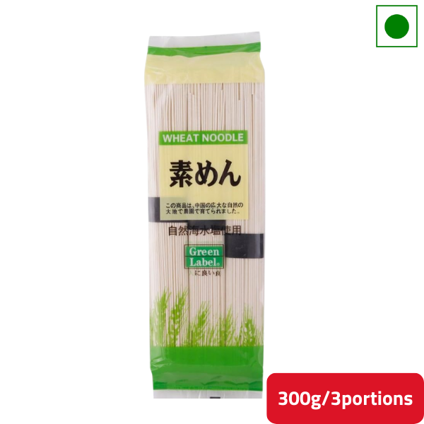 Green Label somen noodles are thin Japanese-style noodles known for their light, delicate texture. They are traditionally served chilled and are easy to eat, making them ideal for lighter meals.