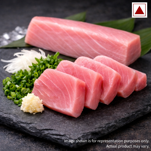 Premium yellowfin tuna prepared as a clean sashimi block cut for easy slicing. Known for its mild flavour and firm texture, this sushi grade tuna is versatile and well suited for both traditional and contemporary raw preparations.