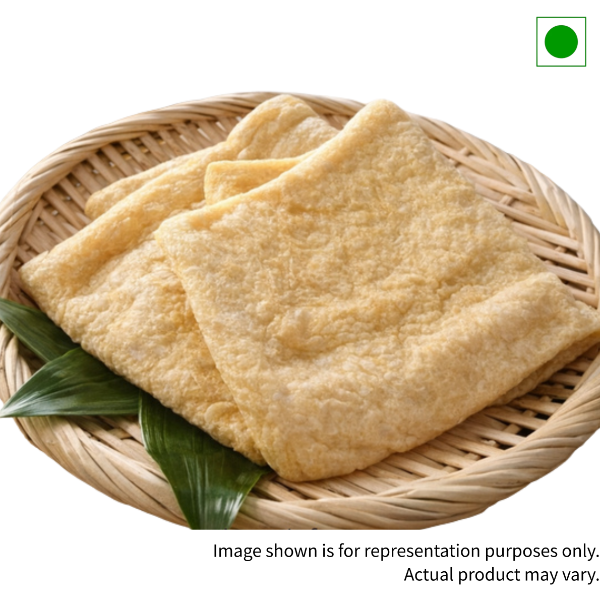 Thin, deep-fried tofu pocket with a light, spongy, slightly chewy texture.