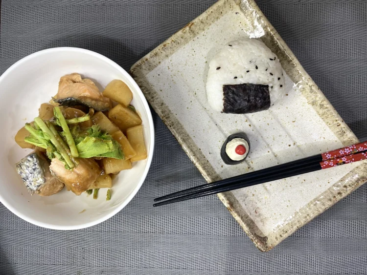 Put rice on the wrap sheet to protect your hands. Take the warm rice and gently press it into a triangle or ball shape using your hands. Don’t press too hard—just enough to hold its shape.