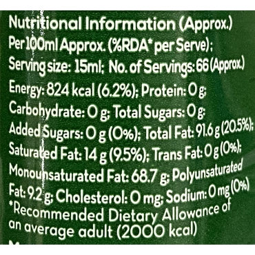 Ingredients : Refined Olive Oil(98%) & Extra Virgin Olive Oil(2%)